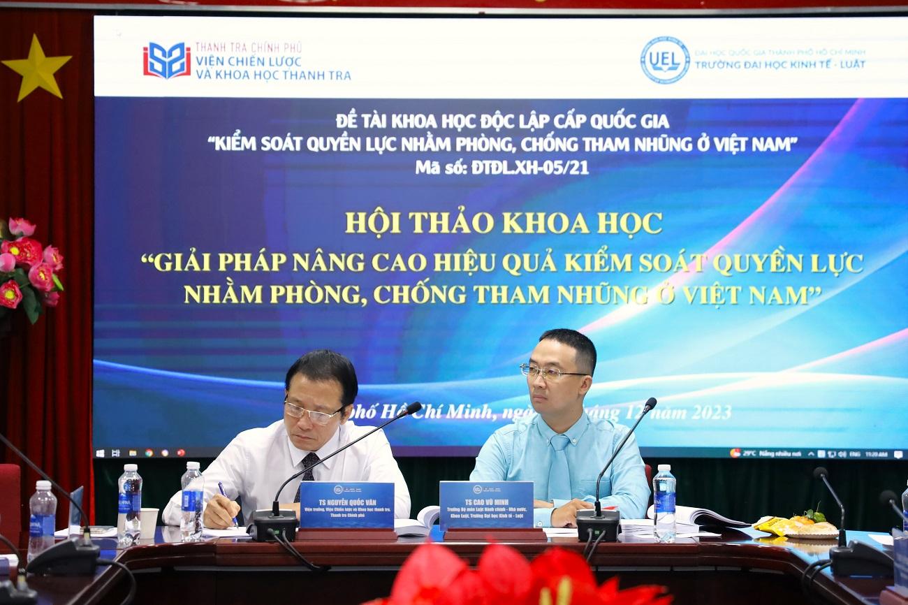 Hội thảo thuộc khuôn khổ đề tài khoa học độc lập cấp quốc gia "Kiểm soát quyền lực nhằm phòng, chống tham nhũng ở Việt Nam", có sự tham dự của PGS.TS Lê Vũ Nam - Phó Hiệu trưởng UEL, TS Nguyễn Quốc Văn - Viện trưởng Viện Chiến lược và Khoa học thanh tra, Chủ nhiệm đề tài, TS Thái Thị Tuyết Dung - Phó trưởng ban phụ trách Ban Thanh tra pháp chế ĐHQG-HCM cùng các đại biểu là chuyên gia, nhà quản lý, giảng viên, nghiên cứu viên các trường đại học.