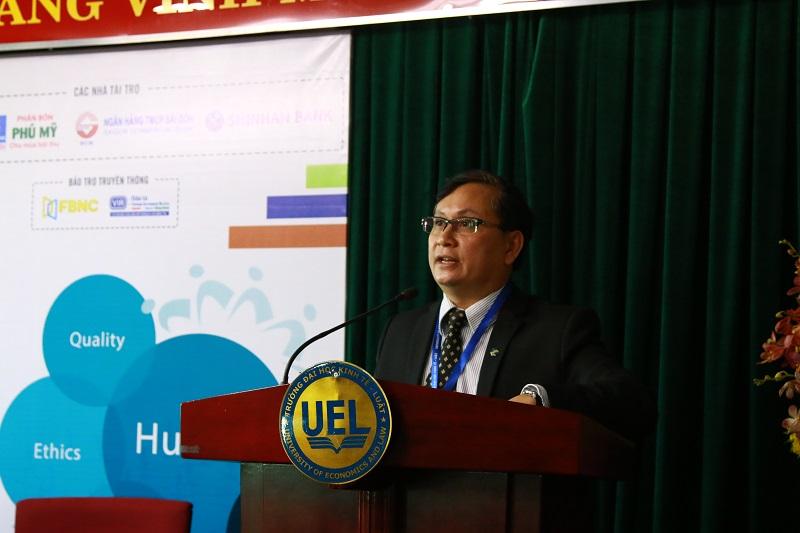 PGS.TS Nguyễn Tiến Dũng - Hiệu trưởng Trường ĐH Kinh tế - Luật phát biểu khai mạc