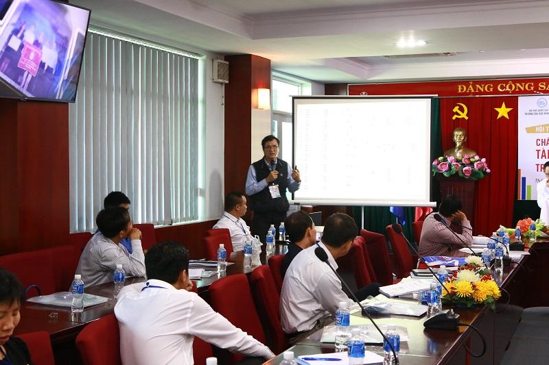 TS. Lưu Tiến Thuận trình bày tham luận "Nghiên cứu ảnh hưởng của stress công việc đến chất lượng nguồn nhân lực tại các ngân hàng ở ĐBSCL"