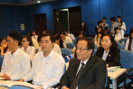 Toàn cảnh Hội thảo Tham dự Hội thảo có sự hiện diện của PGS.TS Dương Đăng Huệ - Vụ trưởng Vụ Pháp luật Dân sự - Kinh tế, Bộ Tư pháp; Ông Hồ Quang Huy - Phó cục trưởng Cục Quản lý xử lý vi phạm hành chính và theo dõi thi hành pháp luật, Bộ Tư pháp; GS Michel Grimald - Đại học Panthéon - Assas Paris II; TS Phạm Văn Hùng - Tổng biên tập Tạp chí Nghiên cứu lập pháp; PGS.TS Nguyễn Tiến Dũng - Hiệu trưởng Trường Đại học Kinh tế - Luật; Cùng hơn 100 nhà khoa học, các chuyên gia, học giả trong lĩnh vực Luật dân sự trong và ngoài nước bao gồm: các học gả đến từ các nước Pháp, Mỹ, Nhật, Camphuchia; Văn phòng Bộ Tư pháp phía Nam; các trường đại học, văn phòng luật sư, văn phòng công chứng, công ty luật, Sở tư pháp.