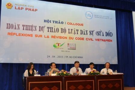 Ngày 24 tháng 4 năm 2015, tại Hội trường Báo Người Lao động, 123 Võ Văn Tần, phường 7, Q.3, TP. HCM đã diễn ra hội thảo khoa học "Hoàn thiện dự thảo Bộ Luật dân sự sửa đổi (phần tài sản, hợp đồng và thừa kế)". Đây là Hội thảo do Trường Đại học Kinh tế - Luật thuộc Đại học Quốc Gia TP. HCM phối hợp với Tạp chí Nghiên cứu lập pháp thuộc Viện nghiên cứu lập pháp của Ủy ban Thường vụ Quốc hội tổ chức.