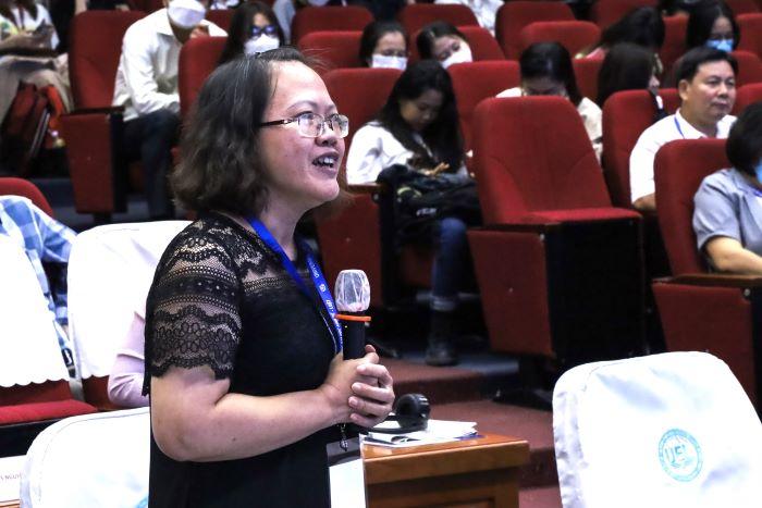 Bà Nguyễn Thị Trang Nhung, Phó Vụ trưởng, Vụ Khoa học Công nghệ và Hợp tác Quốc tế, Tổng cục Thuỷ sản, Bộ Nông nghiệp và Phát triển nông thôn trao đổi tại Hội thảo
