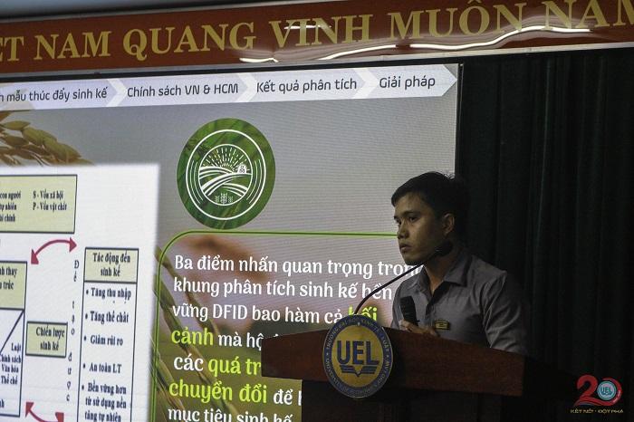 Tham luận 3: "Các giải pháp đạt mục tiêu thu nhập theo tiêu chí nông thôn mới: tiếp cận từ cấu trúc sinh kế của hộ vùng nông thôn Thành phố Hồ Chí Minh" - ThS Huỳnh Ngọc Chương - Trường Đại học Kinh tế - Luật trình bày;
