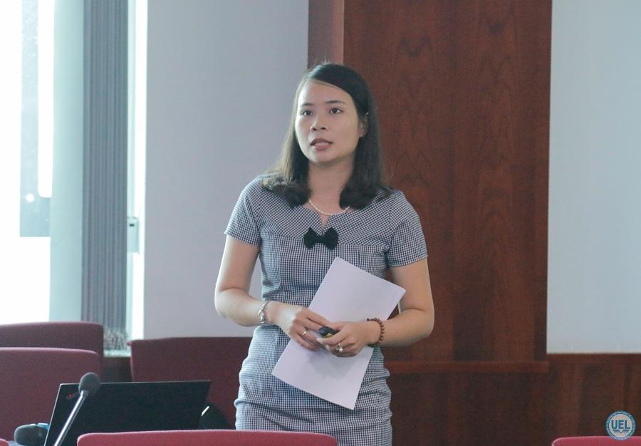 Th.S Trần Lê Hoài Thương trình bày tham luận "Đóng góp của khổi doanh nghiệp trong tăng trưởng GRDP,