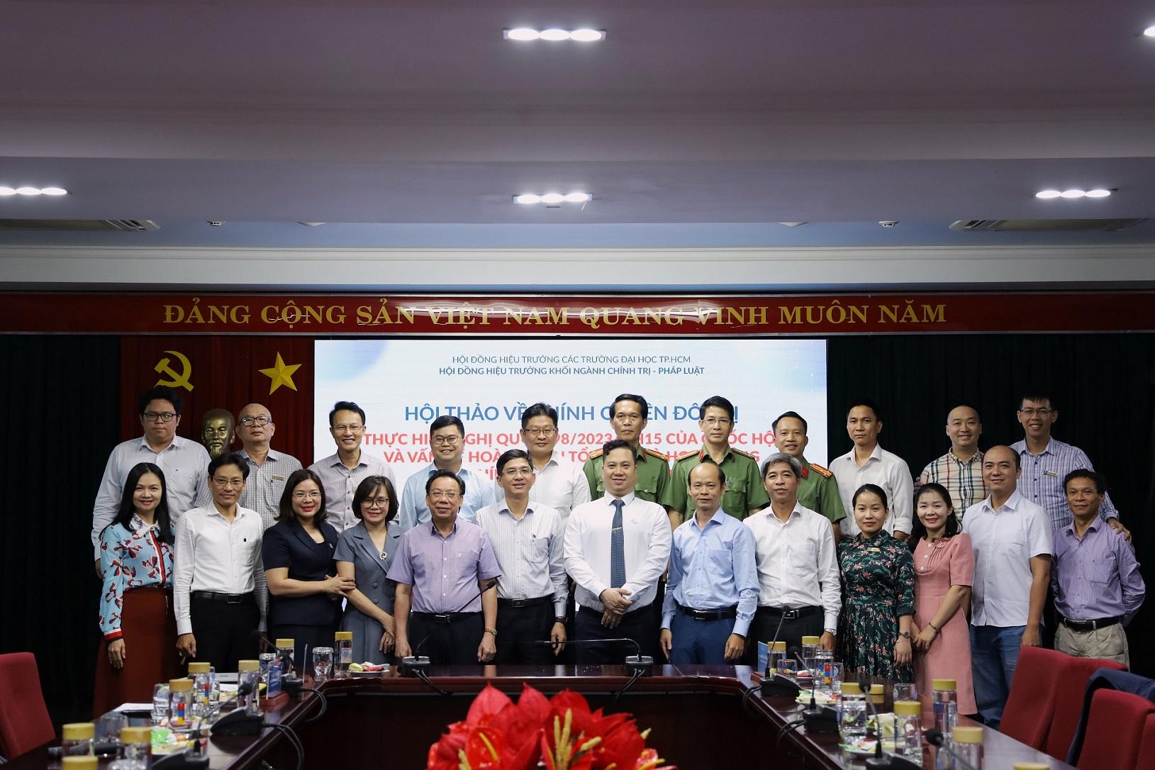Hội thảo do Hội đồng Hiệu trưởng Khối ngành chính trị - pháp luật (trực thuộc Hội đồng Hiệu trưởng các trường đại học TP.HCM) tổ chức nhằm tạo diễn đàn để các nhà khoa học, chuyên gia, nhà thực hiện chính sách đóng góp, phân tích, trao đổi quan điểm, vận dụng Nghị quyết 98/2023/QH15 vào thực tiễn tại TP.HCM.