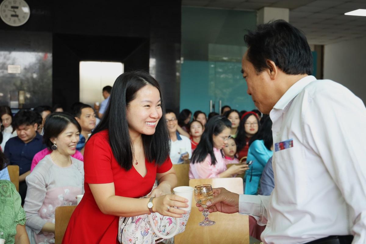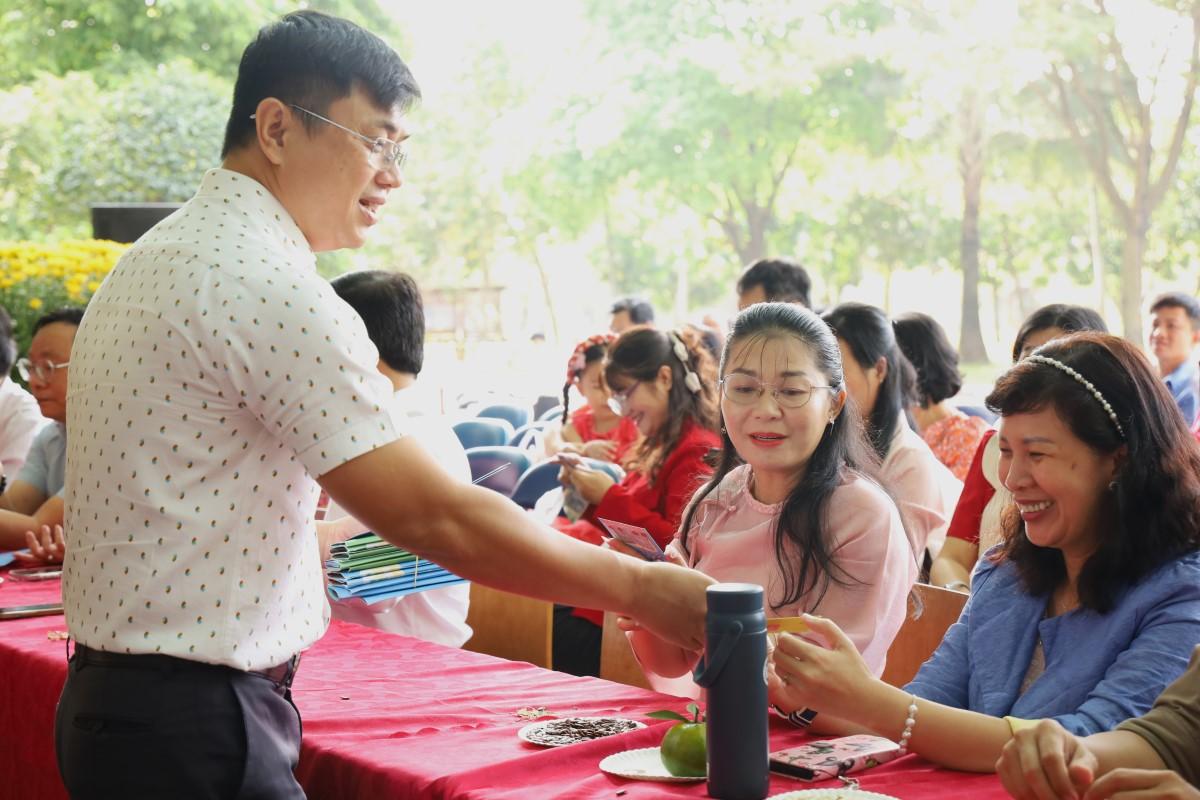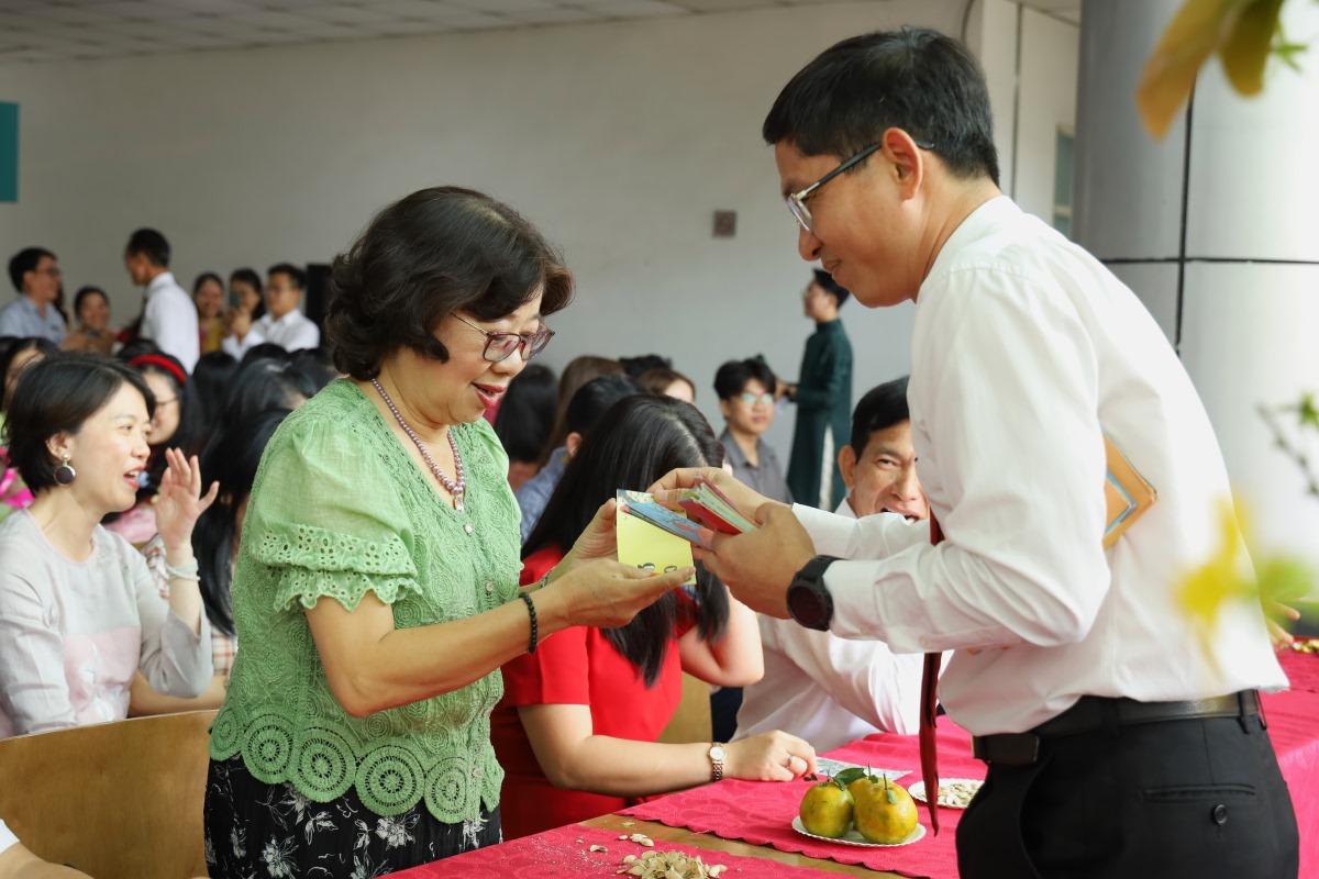 Đồng thời, lãnh đạo Trường cũng trực tiếp chúc Tết và lì xì cho tất cả VC-NLĐ. Nghi thức khai xuân cũng được thực hiện, đánh dấu cho một năm mới với nhiều thành công mới.