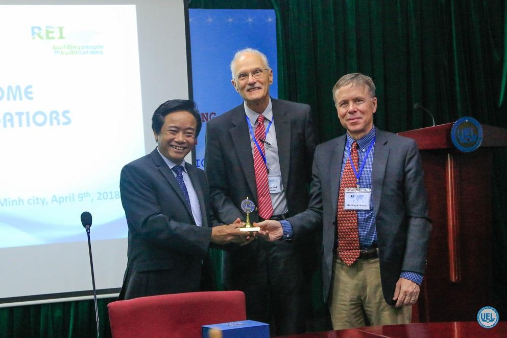 REI (Resource Exchange International) là một tổ chức giáo dục phi lợi nhuận quốc tế, hoạt động với phương châm "xây dựng con người, xây dựng một quốc gia" để khuyến khích, nâng cao năng lực nguồn lực tại chỗ ở các nước. Năm 2018, đoàn doanh nhân Mỹ thuộc REI đã chọn UEL là một trong những điểm đến tại Việt Nam với hơn 10 lớp học kéo dài từ ngày 09.4 - 12.04.2018 để truyền tải những thông tin bổ ích về kinh doanh và kỹ năng quản trị cho sinh viên UEL và các đại sứ sinh viên thuộc tổ chức P2A.