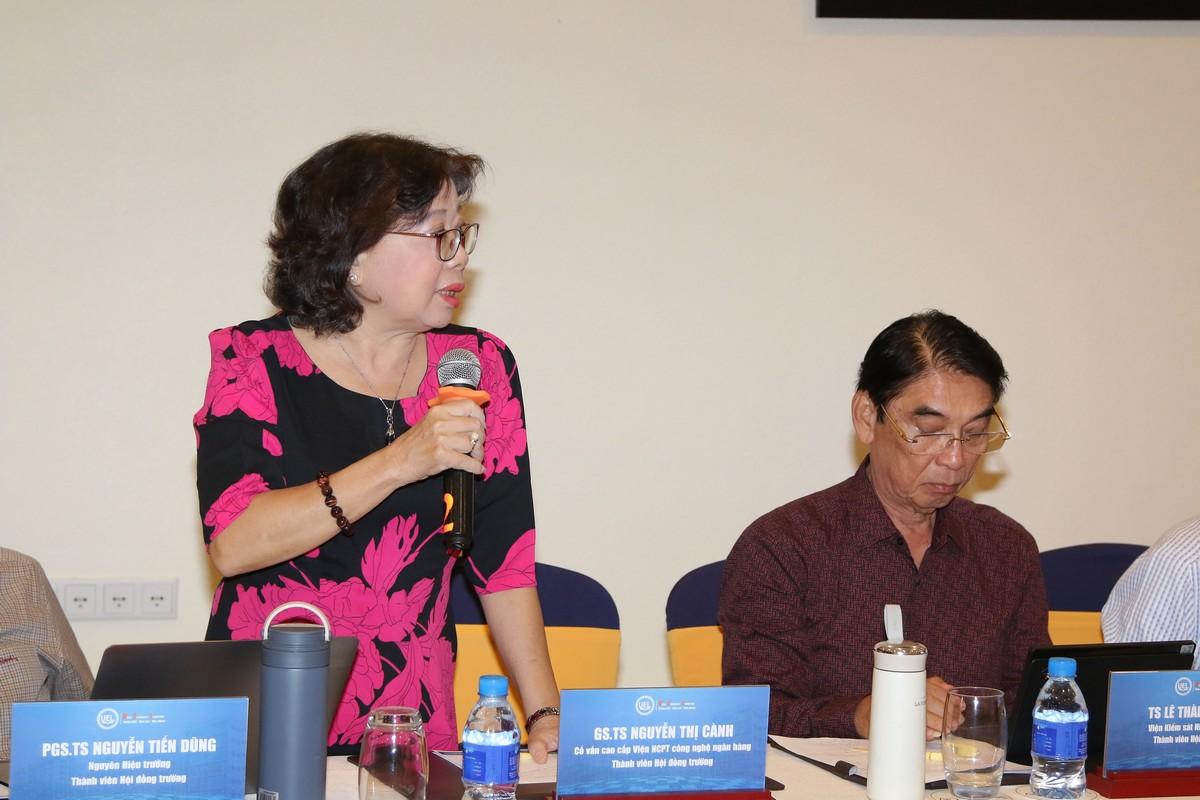 GS.TS Nguyễn Thị Cành - Cố vấn cao cấp Viện Nghiên cứu Phát triển Công nghệ Ngân hàng góp ý các chính sách, giải pháp cụ thể nhằm nâng cao chất lượng thực hiện đề tài khoa học công nghệ
