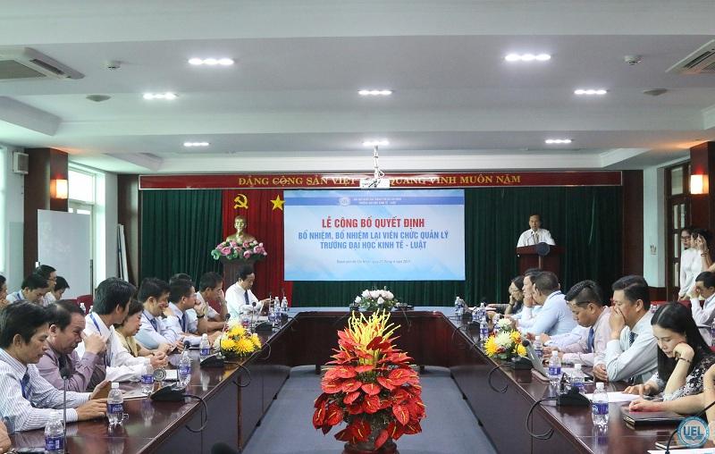 Chiều ngày 27.04.2017, Trường Đại học Kinh tế - Luật đã tổ chức Lễ công bố Quyết định bổ nhiệm, bổ nhiệm lại viên chức quản lý.
