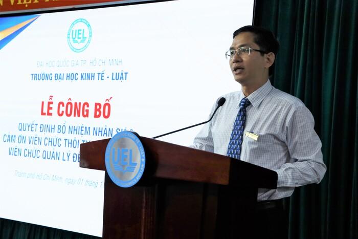Phát biểu tại buổi lễ, PGS.TS Hoàng Công Gia Khánh - Hiệu trưởng Trường, cảm ơn quý thầy, cô đã nhận nhiệm vụ ngày hôm nay và tri ân các thầy, cô vì nhiều lý do khác nhau thôi chức vụ quản lý. Thầy hy vọng rằng dù ở bất kỳ cương vị nào, cũng mong quý thầy, cô đồng lòng đưa UEL ngày càng phát triển.