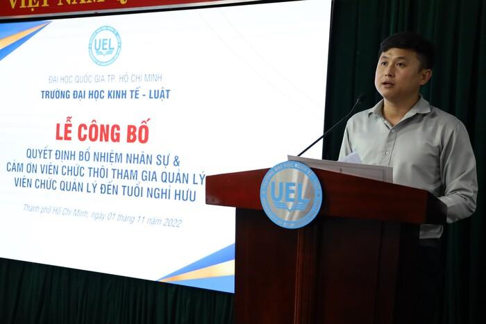 Chiều ngày 01/11/2022, Trường Đại học Kinh tế - Luật tổ chức Lễ công bố quyết định về công tác nhân sự và cảm ơn viên chức thôi giữ chức vụ quản lý.