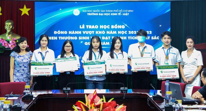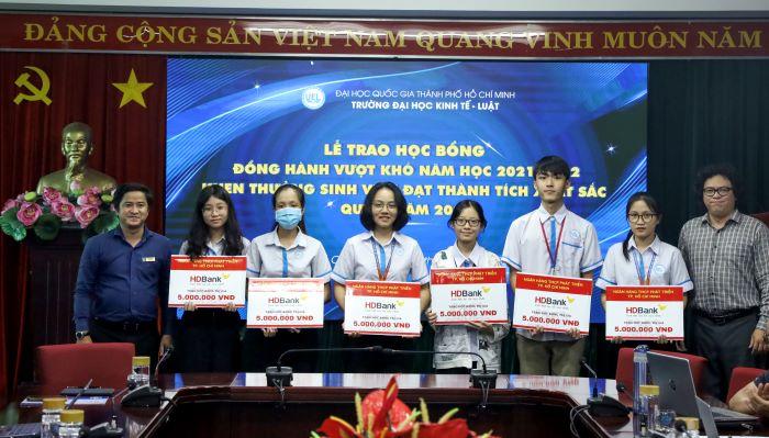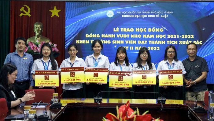 | Trong năm học 2021-2022, Trường cũng tiếp tục nhận được sự quan tâm, hỗ trợ từ các đơn vị, tổ chức tài trợ các hoạt động của Trường nói chung và quỹ học bổng của sinh viên nói riêng, cụ thể: Công ty Cổ phần Tập đoàn Hoa Sen, Ngân hàng TMCP Phát triển TP.HCM (HDBank), Ngân hàng TMCP Ngoại thương Việt Nam (Vietcombank) - Chi nhánh TP. HCM, Ngân hàng Nông nghiệp và Phát triển Nông thôn - Chi nhánh Sài Gòn; Các đơn vị đã tài trợ trao 60 suất học bổng Đồng hành vượt khó cho các bạn sinh viên (5 triệu đồng/suất). Đây là các bạn sinh viên có hoàn cảnh gia đình khó khăn, đạt nhiều thành tích tốt trong học tập và rèn luyện; có ước mơ hoài bão lớn, và mong muốn tạo ra những giá trị tích cực cho cộng đồng và xã hội. |