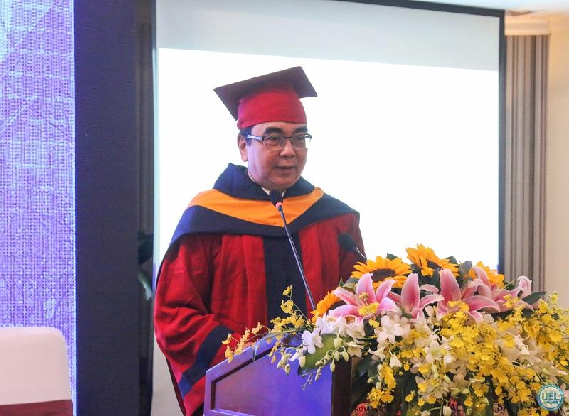 PGS.TS Nguyễn Tiến Dũng - Hiệu trưởng Trường ĐH Kinh tế - Luật phát biểu nhân Lễ tốt nghiệp