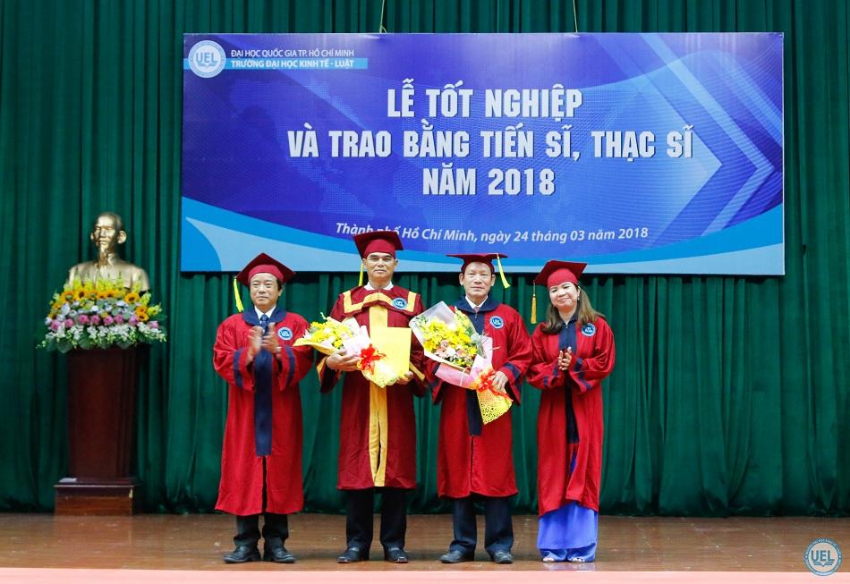 Sáng ngày 24.3.2018, tại Trường Đại học Kinh tế - Luật đã diễn ra Lễ tốt nghiệp và trao bằng tiến sĩ, thạc sĩ năm 2018.