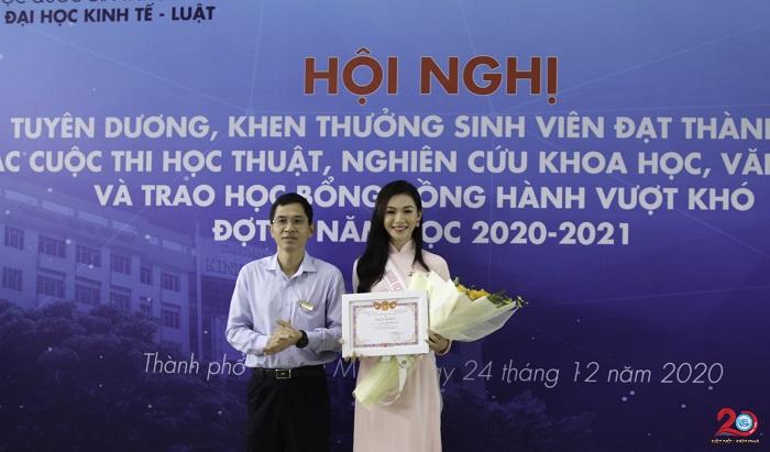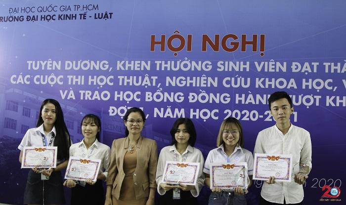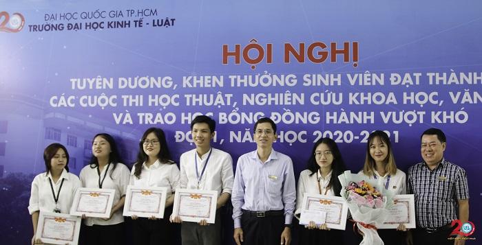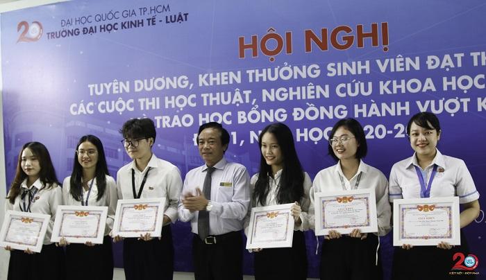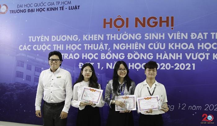 Tiếp đó, Hội nghị tuyên dương các nhóm sinh viên có đề tài xuất sắc đạt giải thưởng Nhà khoa học trẻ UEL năm 2019 và 2020. Giải thưởng Nhà khoa học trẻ UEL là một giải thưởng được tổ chức thường niên nhằm khơi gợi niềm đam mê nghiên cứu khoa học ở các bạn sinh viên, từ đó tìm ra các nhóm sinh viên với các đề tài nghiên cứu có xuất sắc chinh phục các giải thưởng nghiên cứu khoa học trong và ngoài nước.