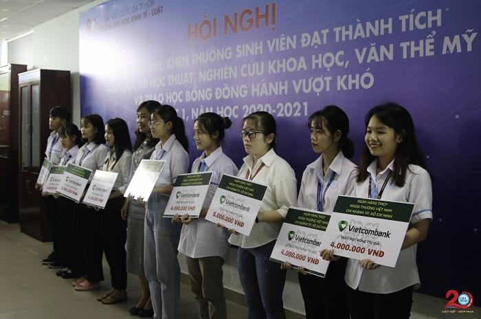 Bên cạnh đó, nhà trường vẫn tiếp tục duy trì định kỳ và triển khai xét trao học bổng "Đồng hành vượt khó" trong năm 2020 nhằm mục đích hỗ trợ sinh viên có hoàn cảnh khó khăn, đạt kết quả tốt trong học tập và sinh viên bị ảnh hưởng bởi các đợt thiên tai, bão lũ ở miền Trung thời gian qua. Đây sẽ là nguồn động lực để góp phần nào kinh phí giúp các bạn vượt qua những khó khăn, thử thách, tiếp học thực hiện ước mơ của mình.