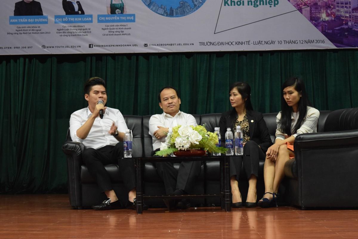 Với kinh nghiệm từng làm cho các công ty, tập đoàn và khởi nghiệp, tổ chức các diễn đàn về khởi nghiệp Th.S Lâm Minh Chánh đã chia sẻ nhiều kiến thức bổ ích về khởi nghiệp như: khởi nghiệp là gì? khởi nghiệp như thế nào? khởi nghiệp vào lúc nào là thích hợp? chúng ta cần những gì để bắt đầu khởi nghiệp?. Phần chia sẻ của 3 cựu sinh viên UEL đã khởi nghiệp thành công trên các lĩnh vực: tư vấn, sản xuất và dịch đã thu hút hàng chục câu hỏi quan tâm của sinh viên, trong đó nhiều câu hỏi khá sát với xuất phát điểm của sinh viên mới ra trường: vì sao anh/chị chọn lĩnh vực khởi nghiệp đó, có những khó khăn nào khi thực hiện? những kiến thức được học trường có ích cho lĩnh vực các anh/chị đang làm hay không? có nên đánh đổi giữa việc khởi nghiệp và học tập hay không?