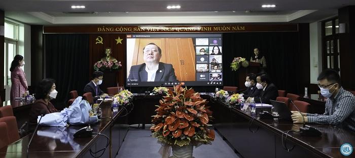 Thích ứng với tình hình bình thường mới, Trường Đại học Kinh tế - Luật triển khai công tác đánh giá luận án cấp cơ sở đào tạo với hai hình thức trực tiếp và trực tuyến. Buổi bảo vệ có sự tham dự trực tiếp của Bà Trương Mỹ Hoa - Nguyên Bí thư Trung ương Đảng, Nguyên Phó Chủ tịch nước, nguyên Chủ tịch Hội Liên hiệp phụ nữ Việt Nam và sự tham dự trực tuyến của bà Hà Thị Nga - Ủy viên Trung ương Đảng, Chủ tịch Hội Liên hiệp Phụ nữ Việt Nam cùng PGS.TS Huỳnh Thành Đạt - Ủy viên Trung ương Đảng, Bộ trưởng Bộ Khoa học và Công nghệ.