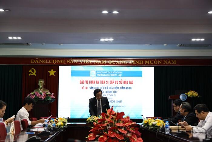 Đề tài luận án của NCS Khamsone Somlet là:"Nâng cao hiệu quả hoạt động giảm nghèo tại nước CHDCND Lào" thuộc chuyên ngành Kinh tế chính trị và mã số chuyên ngành là: 9310102 với sự hướng dẫn độc lập của PGS.TS Nguyễn Chí Hải.