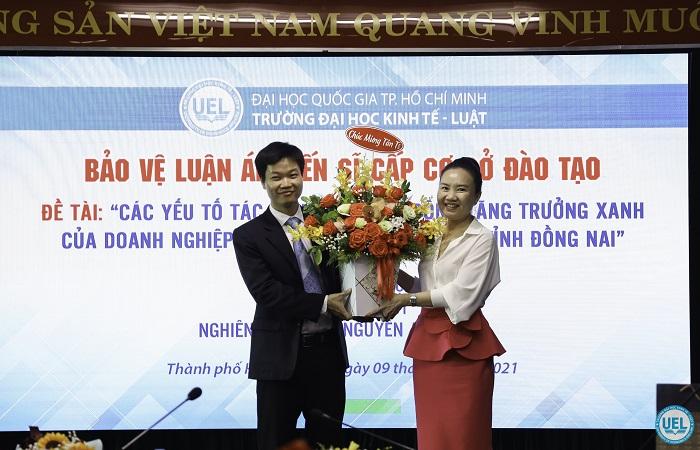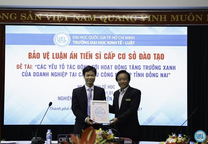 Ngày 09/04/2021, tại Trường Đại học Kinh tế - Luật, ĐHQG-HCM, nghiên cứu sinh Nguyễn Anh Tuấn đã bảo vệ thành công luận án tiến sĩ cấp cơ sở đào tạo ngành Kinh tế học, mã số chuyên ngành: 62.31.01.01, với đề tài "Các yếu tố tác động đến tăng trưởng xanh của doanh nghiệp tại các khu công nghiệp tỉnh Đồng ...