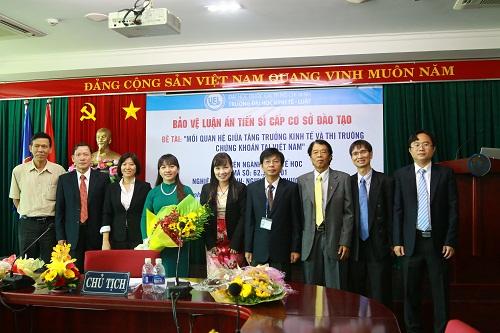 Ngày 26/7/2016, tại Trường ĐH Kinh tế - Luật, ĐHQG HCM, Nghiên cứu sinh Nguyễn Thị Phương Nhung đã bảo vệ thành công luận án tiến sĩ kinh tế cấp cơ sở đào tạo, chuyên ngành Kinh tế học, Mã số chuyên ngành: 62.31.01.01, với đề tài "Mối quan hệ giữa tăng trưởng kinh tế và thị trường chứng khoán tại Việt Nam".