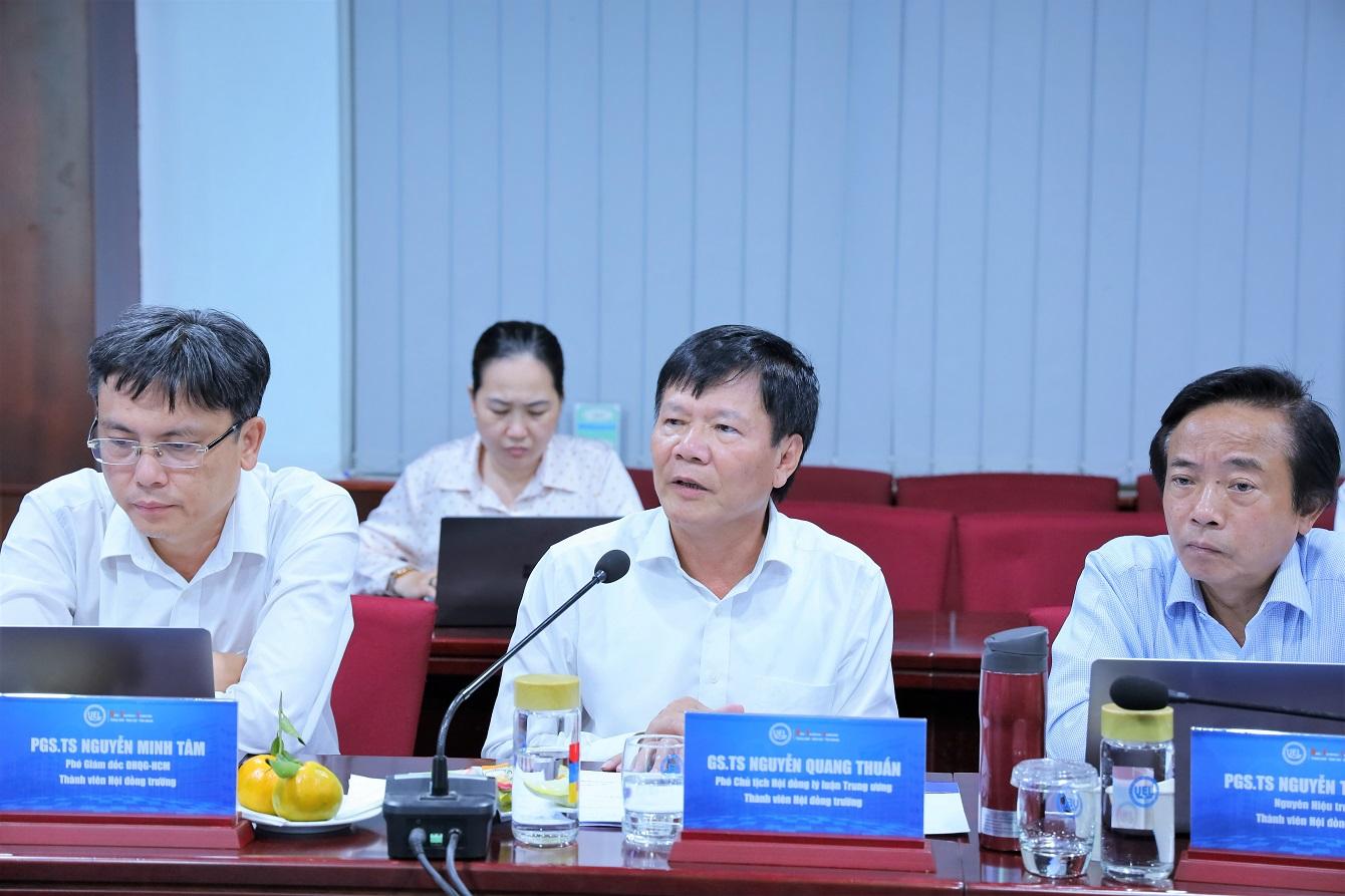GS.TS Nguyễn Quang Thuấn - Phó Chủ tịch Hội đồng Lý luận Trung ương, thành viên HĐT đóng góp ý kiến UEL cần tiếp tục tăng cường công tác nghiên cứu và tư vấn chính sách kinh tế cho TP.HCM và các địa phương