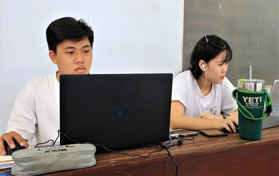 Sinh viên Trường Đại học Bách khoa TP.HCM tự học ở dãy hành lang của trường