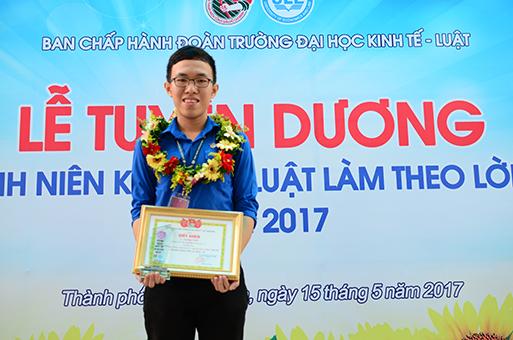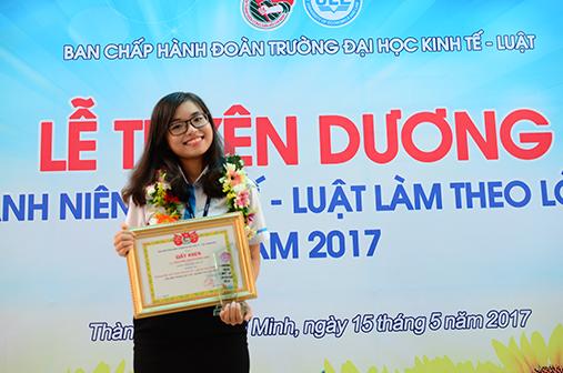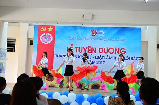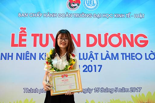Vào ngày 15/05/2017 tại trường ĐH Kinh tế - Luật Đoàn trường đã diễn ra thành công buổi lễ Tuyên dương Thanh niên Kinh tế - Luật làm theo lời Bác 2017. Nhằm tạo thêm động lực thúc đẩy đoàn viên thanh niên phấn đấu, tu dưỡng đạo đức phẩm chất, phát hiện và nhân rộng những cách sáng tạo những mô hình hay, sáng tạo, đẩy mạnh phong trào thi đua yêu nước trong tuổi trẻ Kinh tế - Luật trong những năm học tới.