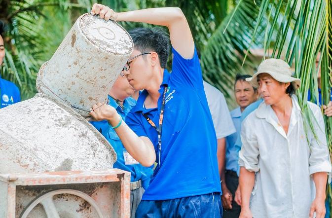 Chiến sĩ Mùa hè xanh UEL đang bê tông hóa tuyến đường Ấp