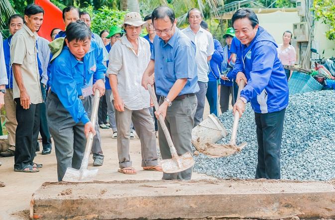 Đồng thời trong chuyến đi, đoàn cũng đã tham gia Lễ khởi công làm tuyến đường ở xã Tân Thanh - huyện Giồng Trôm do các bạn chiến sĩ đóng quân tại đây nhận trách nhiệm thực hiện bê tông hóa và Trường đại học Kinh tế - Luật đóng góp một phần kinh phí với tổng giá trị là 36 triệu đồng.