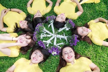 Kiều Oanh (Áo dài vàng ở giữa) trước giờ phút chia tay