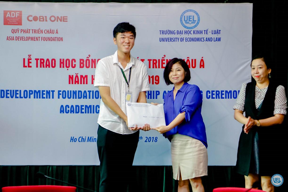 Ngày 04.10.2018, Quỹ Phát triển châu Á (ADF) đã trao 10 suất học bổng năm học 2018-2019 cho sinh viên Trường Đại học Kinh tế - Luật.