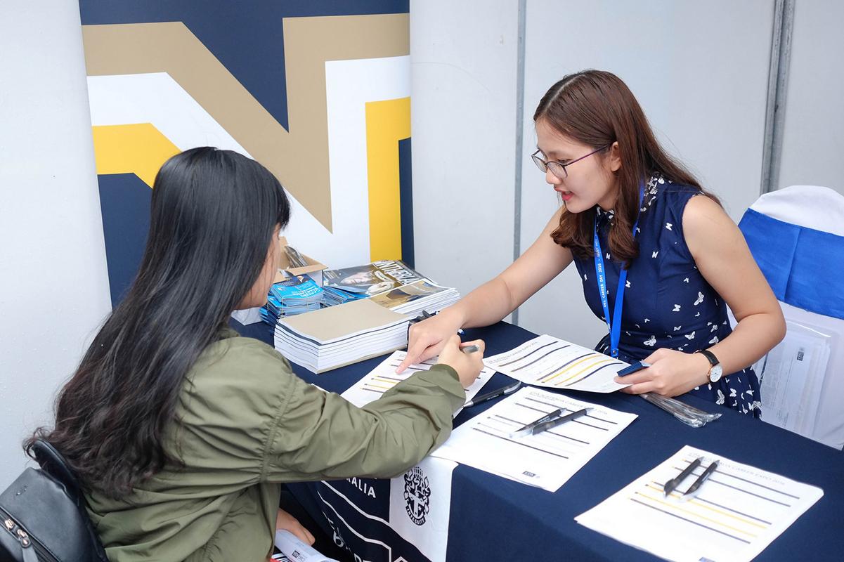 Đông đúc sinh viên tại một gian hàng