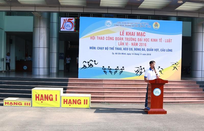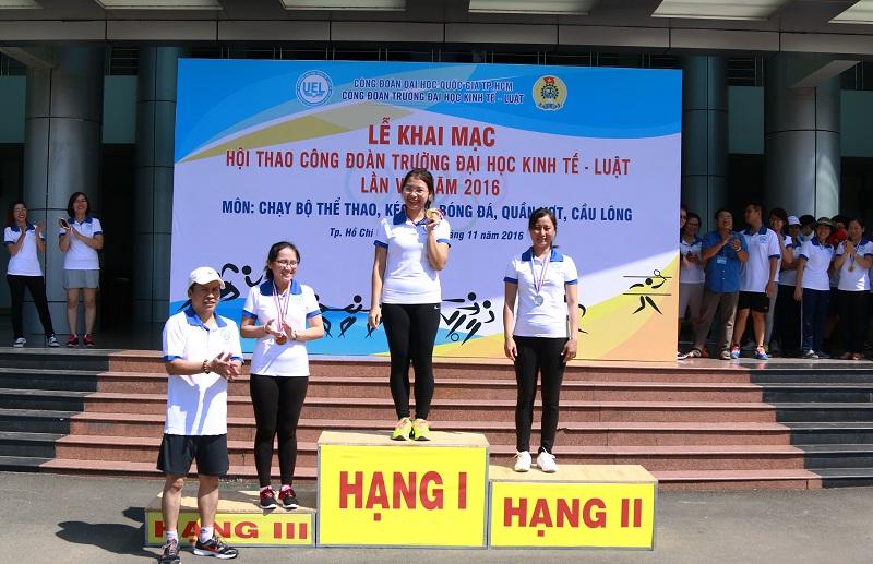 Công đoàn trường Đại học Kinh tế - Luật vừa tổ chức Hội thao toàn trường lần thứ VI năm 2016 nhằm chào mừng 16 năm Ngày truyền thống Trường 06/11, ngày Nhà giáo Việt Nam 20/11 và tiếp tục đẩy mạnh phong trào thể dục thể thao, nâng cao thể chất cho tập thể cán bộ, viên chức, người lao động của Trường.