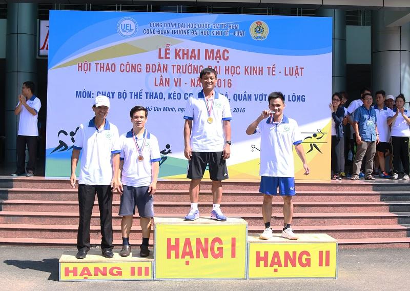 Ở môn cầu lông diễn ra vào ngày 27.11.2016, giải nhất đơn nam thuộc về Th.S Lưu Văn Lập (Phòng Kế hoạch - Tài chính); giải nhất đơn nữ thuộc về Th.S Lê Thị Kim Hiền (Khoa Hệ thống thông tin); giải nhất đôi nam thuộc về Th.S Đào Vũ Hoài Giang (Khoa Kế toán - Kiếm toán) và Th.S Nguyễn Duy Nhất (Khoa Hệ thống thông tin); giải nhất đôi nữ thuộc về Th.S Trịnh Hà Phương (Trung tâm Đào tạo quốc tế) và Th.S Đào Thị Anh Thư (Bộ môn toán).