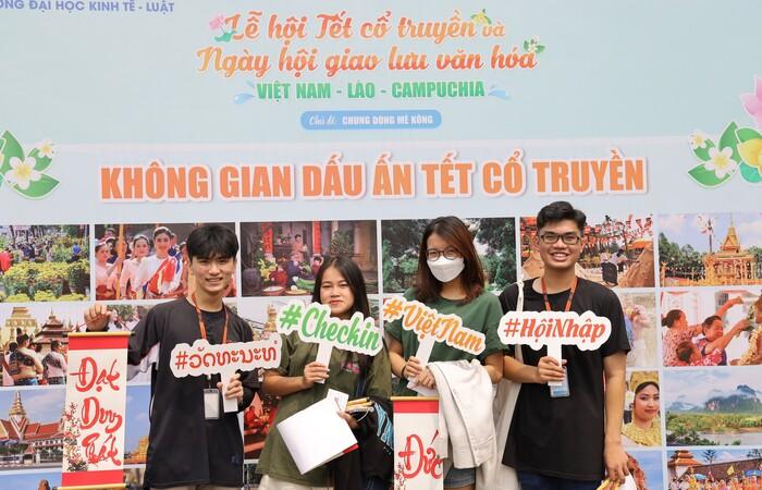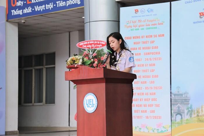 Phát biểu khai mạc, đồng chí Trần Thị Kiều Anh - Chủ tịch Hội Sinh viên Trường Đại học Kinh tế - Luật, Trưởng Ban tổ chức ngày hội, khẳng định Lễ hội Tết cổ truyền và Ngày hội giao lưu Văn hoá Việt Nam - Lào - Campuchia được tổ chức hằng năm với tinh thần kết nối sinh viên Việt Nam và quốc tế, tạo cơ hội cho sinh viên trang bị kiến thức về kinh tế - xã hội của ba nước Việt Nam, Lào, Campuchia nói riêng và các nước ASEAN nói chung.