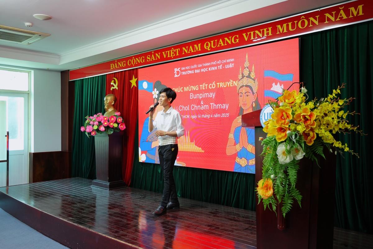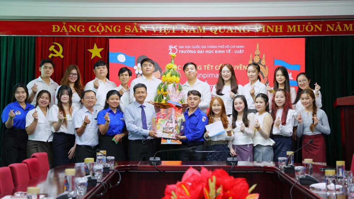 Với mong muốn mang không khí Tết quê nhà đến gần hơn với các bạn lưu học sinh Lào, Campuchia đang học tập tại Trường, Trường ĐH Kinh tế - Luật, ĐHQG-HCM (UEL) đã tổ chức buổi chúc mừng ấm cúng, thể hiện sự quan tâm, chia sẻ và gắn kết giữa người học và nhà trường, biểu tượng cho tình hữu nghị gắn bó giữa Việt Nam - Lào, Việt Nam - Campuchia.