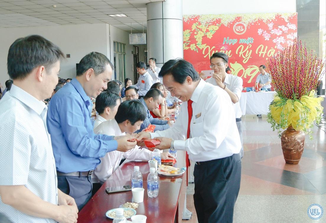 Sau chương trình "Tết trồng cây", lãnh đạo ĐHQG TP.HCM, Đảng ủy, Ban Giám hiệu cùng tập thể cán bộ, viên chức nhà trường hân hoan với buổi "Họp mặt đầu Xuân Kỷ Hợi 2019" tại sảnh lớn của Trường.