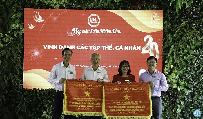 Trong thời gian vừa qua, nhiều tập thể, cá nhân của Trường Đại học Kinh tế - Luật đã không ngừng nỗ lực, phấn đấu hoàn thành xuất sắc nhiệm vụ, kết quả đã có 02 tập thể xuất sắc nhận Cờ thi đua cấp Bộ và 03 cá nhân vinh dự nhận Kỷ niệm chương Vì sự nghiệp giáo dục của Bộ Giáo dục và Đào tạo.