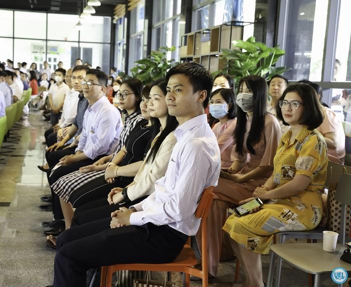 Tham dự chương trình có các đại diện ĐHQG-HCM; Đảng ủy, Ban Giám hiệu cùng tập thể viên chức, người lao động Trường Đại học Kinh tế - Luật.