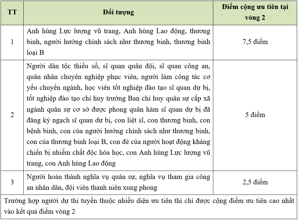 o Số điểm vòng 2 cộng với điểm ưu tiên (nếu có) cao hơn lấy theo thứ tự từ cao xuống thấp trong phạm vi chỉ tiêu được tuyển dụng của từng vị trí việc làm.