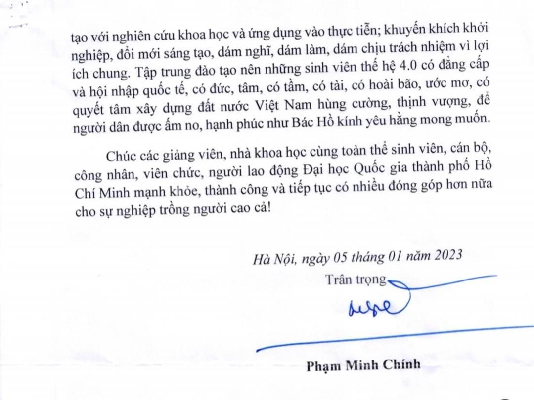 Toàn thư Thủ tướng Phạm Minh Chính gửi ĐHQG-HCM