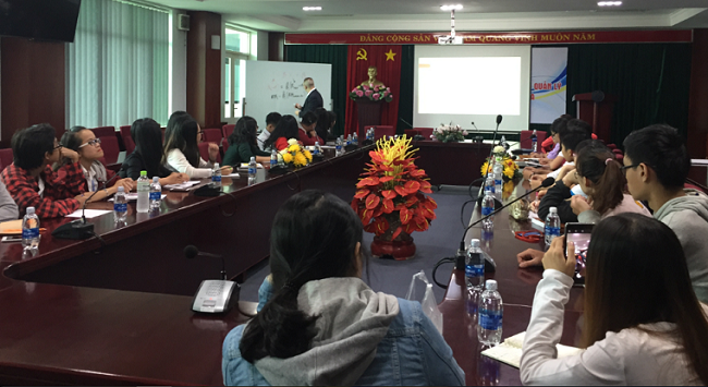Tại buổi làm việc, phó giáo sư Stephen Rush đã trình bày chủ đề "Cost of Capital" cho sinh viên lớp chất lượng cao. Đây là một chủ đề khó trong môn học quản trị tài chính nâng cao và đầu tư tài chính. Các sinh viên đã được thảo luận, trao đổi các vấn đề về lý thuyết cũng như thực tiễn trong xác định chi phí vốn để đánh giá dự án đầu tư và định giá doanh nghiệp. Đây là một cơ hội tốt để các bạn sinh viên học hỏi, trao đổi kiến thức với một chuyên gia người nước ngoài và luyện tập các kỹ năng giao tiếp bằng tiếng Anh.