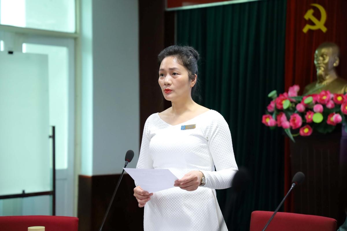 Đ/c Hồng Liên trình bày dự thảo văn kiện Đại hội chi bộ khoa Quản trị kinh doanh - Toán kinh tế