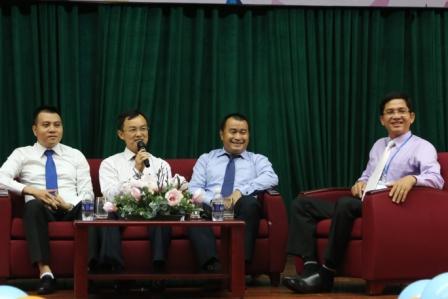 Các diễn giả chia sẻ cùng sinh viên ngành TCNH .
