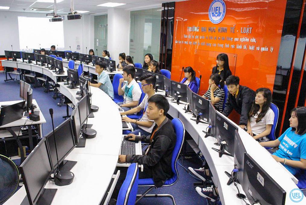 Thí sinh giao dịch tại Phòng Mô phỏng thị trường tài chính