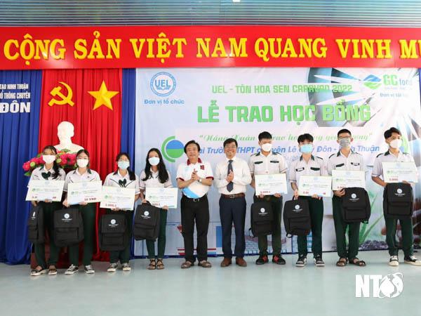 Ngày 25-4, Trường Đại học Kinh tế - Luật (UEL) phối hợp với Công ty Cổ phần Thực phẩm Cánh Đồng Việt (GC Food) tổ chức chương trình "UEL - Tôn Hoa Sen Caravan 2022" trao học bổng cho học sinh có hoàn cảnh khó khăn, học giỏi tại Trường THPT chuyên Lê Quý Đôn.