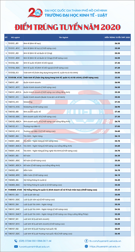 Trường Đại học Kinh tế - Luật công bố điểm trúng tuyển Đại học chính quy năm 2020