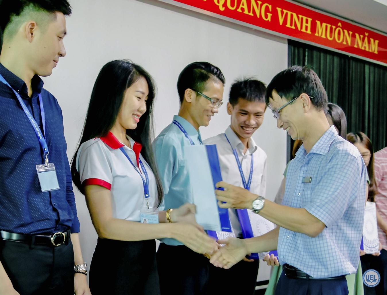Đại diện công đoàn Trường trao quyết định kết nạp cho các công đoàn viên mới