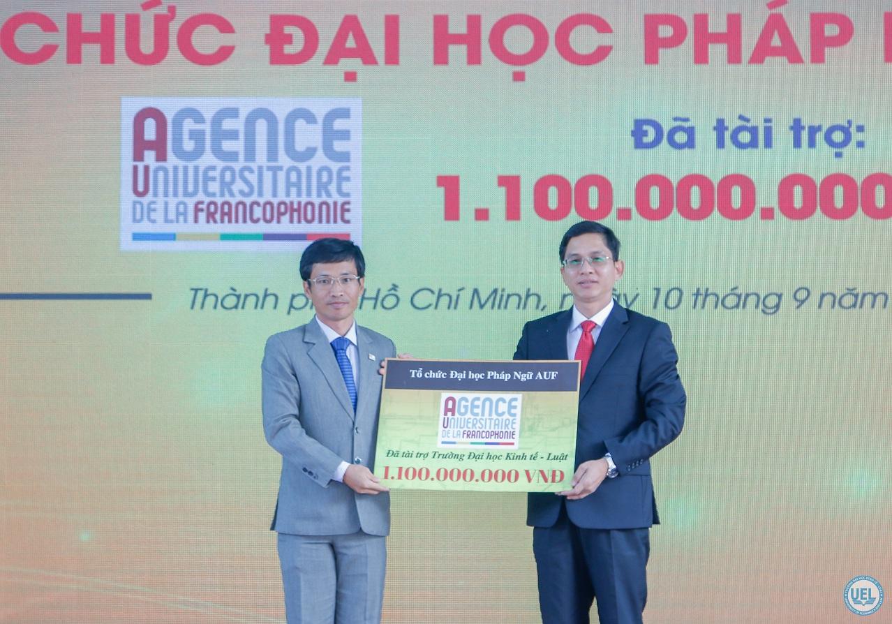 PGS.TS Hoàng Công Gia Khánh - Phó Hiệu trưởng nhà trường tiếp nhận tài trợ từ các đơn vị
